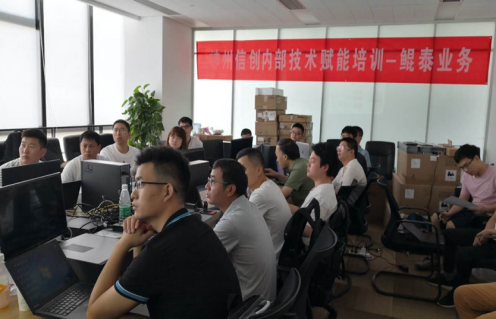 在这疫情特殊的时期,本次技术赋能培训采用了线上线下相结合的授课方式。线上录播的课程,学员们可以反复观看学习,线下的实验课程和考试地点安排在武汉平台,参加培训的学员共40名,分为两批,每批20人。培训的课程内容丰富,辅导扎实,方法灵活。虽然武汉的天气非常炎热,但是无法阻挡大家对学习神州产品知识的热情,没有一名学员请假,更没有出现迟到早退等现象。在下午6点以后,楼内的中央空调就会关闭,教室内20名学员加上样机设备的运行,室温已达到40度以上,大家仍然在教室完成实验课程。全组成员相互交流,共同学习,共同提高。